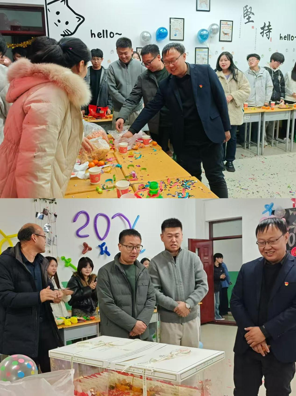 为庆祝2026年元旦佳节,营造喜庆祥和、团结奋进的校园文化氛围,丰富学生课余生活,12月23日晚,生物工程学院以班级为单位,在逸夫楼各教室成功举办“喜迎新年,共谱华章”主题联欢晚会。全院师生在温馨活泼的班级氛围中共同迎接新的一年。
